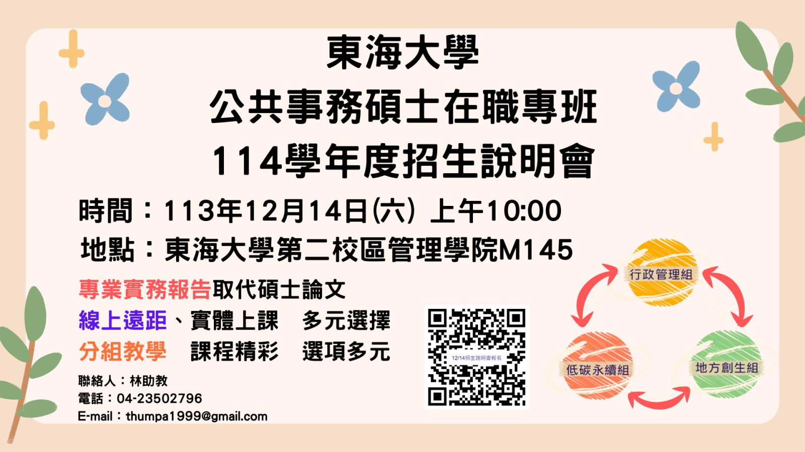 114學年度公共事務碩士在職專班招生報名系統來囉!!!