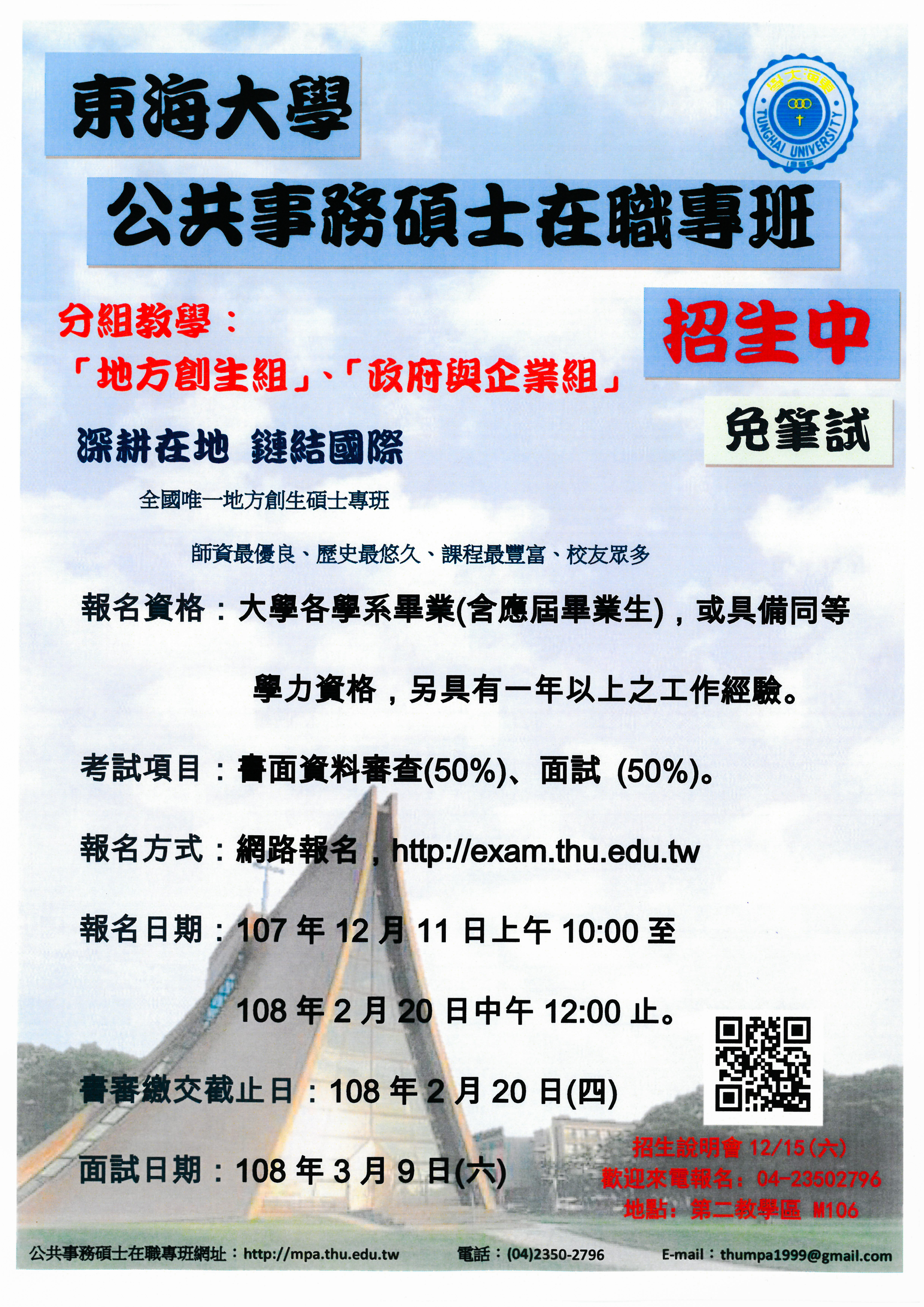 108學年度公共事務碩士在職專班招生訊息來囉!!!