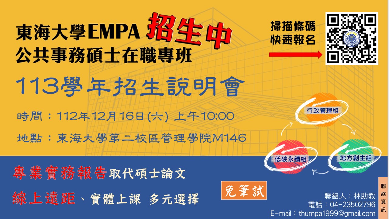 113學年度公共事務碩士在職專班招生報名系統來囉!!!
