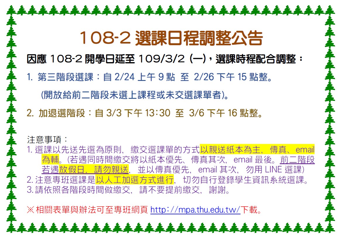 108-2選課日程調整公告