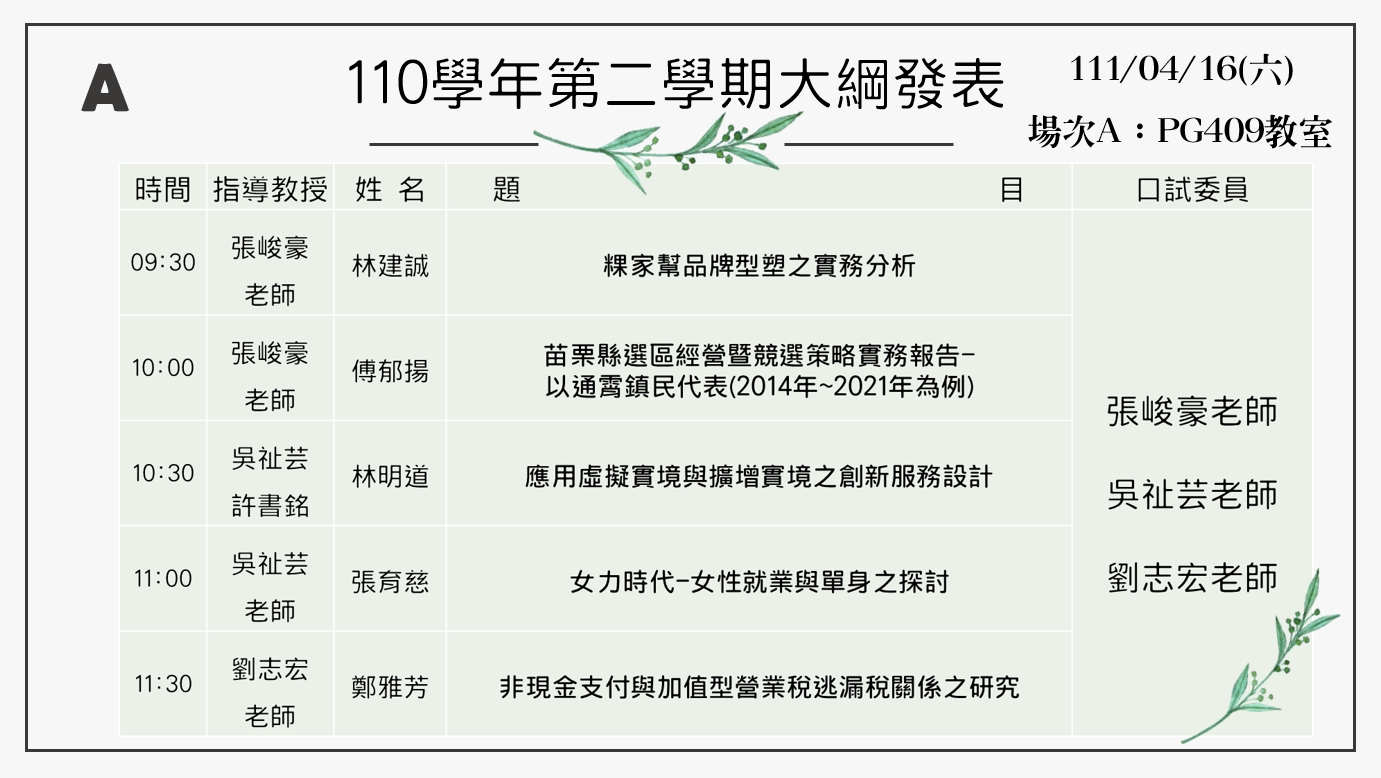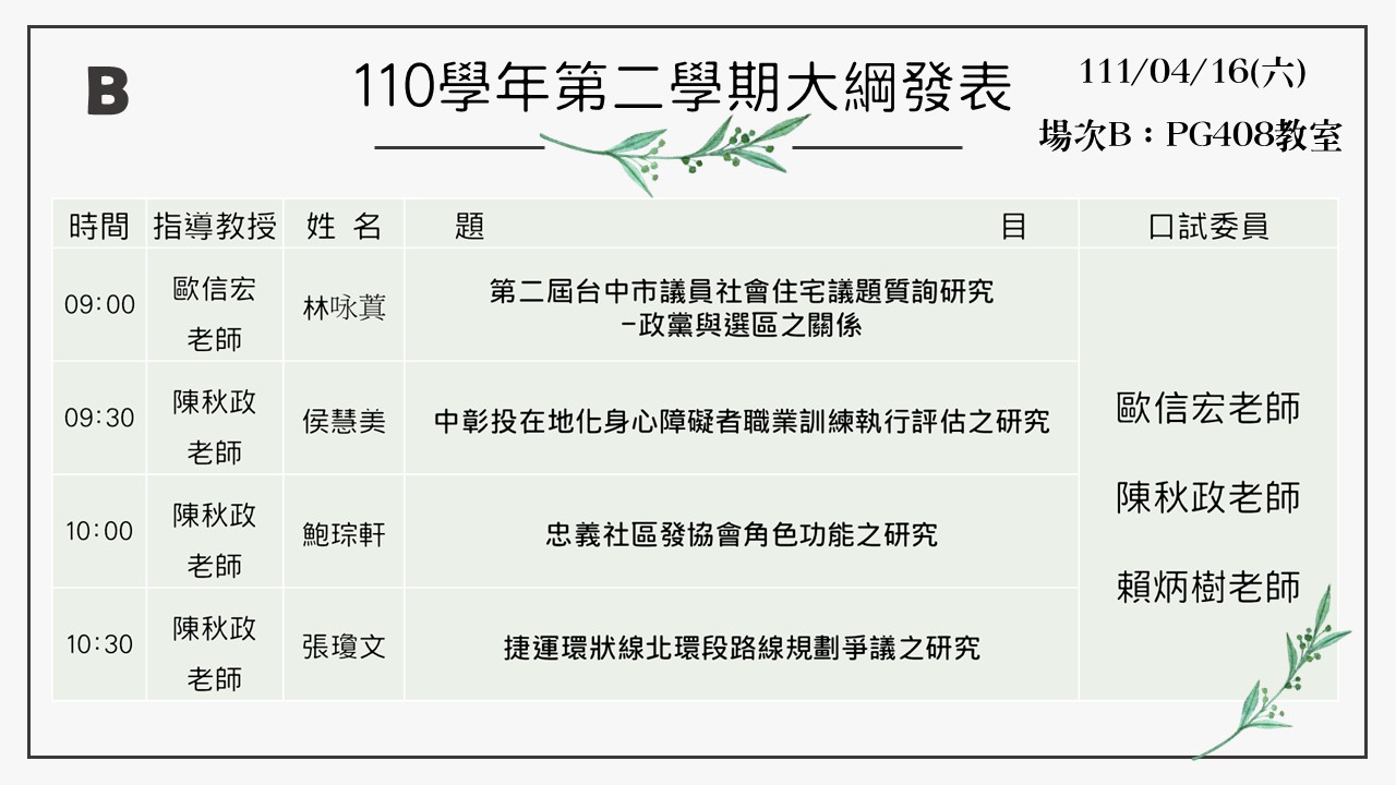 110-2大綱發表申請即將截止,請同學務必準時申請,以免影響自身權益