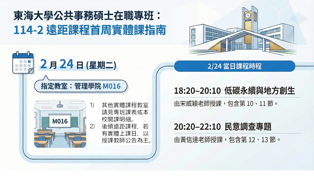 【教室公告】遠距課程第一周為實體課程,上課教室為管院M016教室