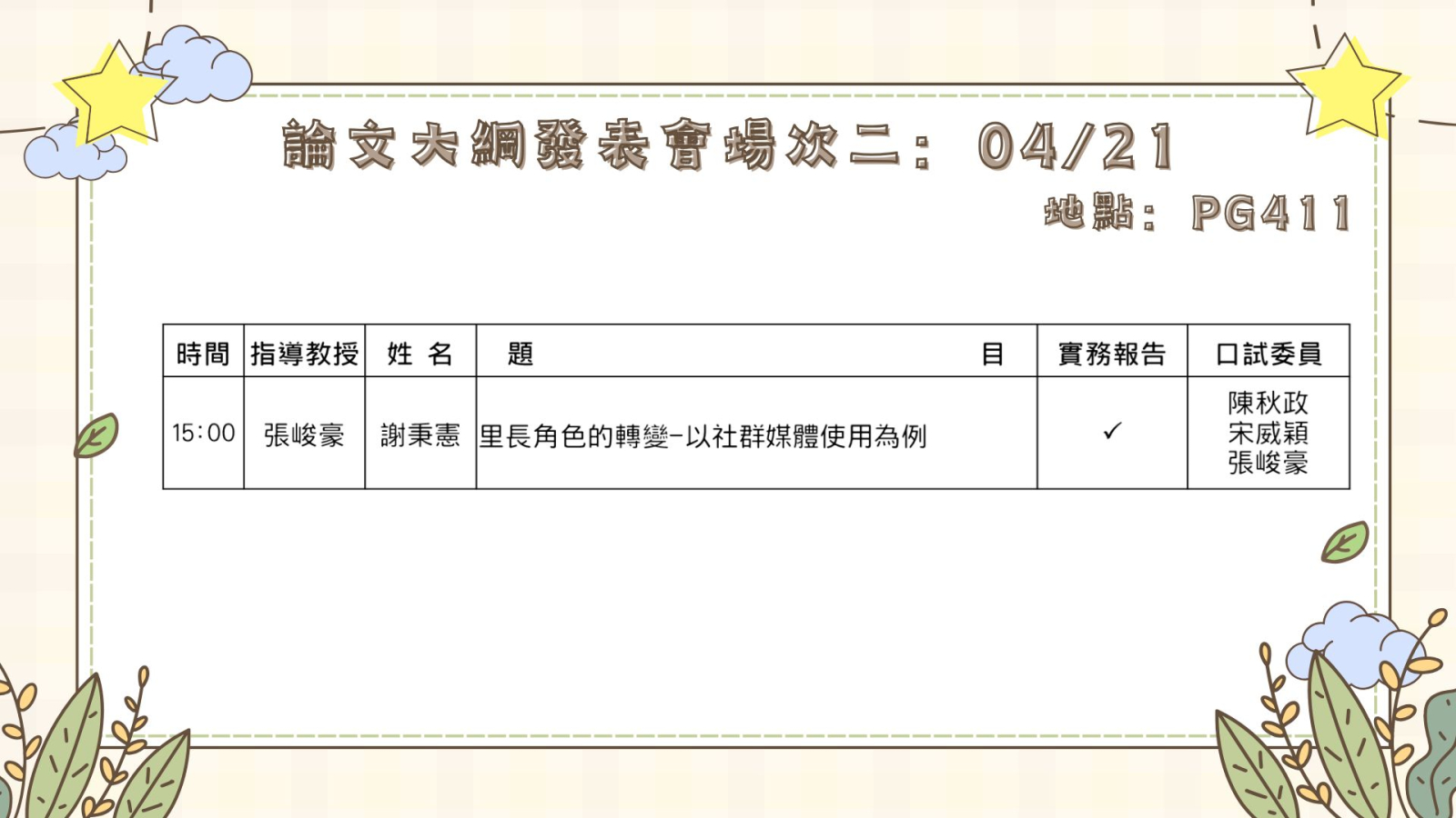 論文大綱與學位口試發表會